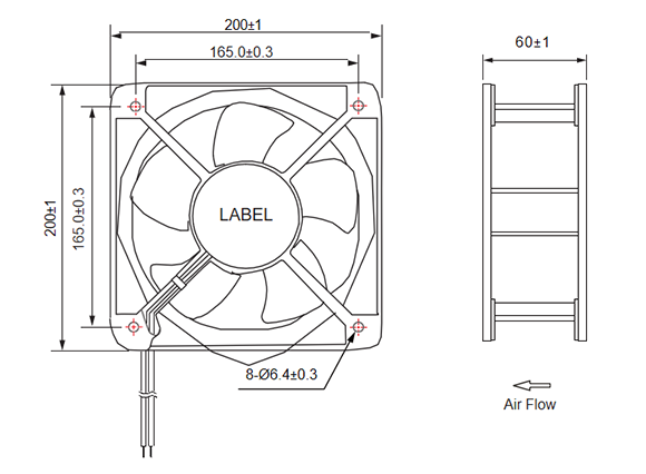 UL2468 AWG #22 or equivalent 红色线正级 Red Wire Positive (+) 黑色线负级 Black Wire Negative (-)