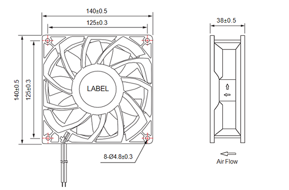 UL2468 AWG #22 or equivalent 红色线正级 Red Wire Positive (+) 黑色线负级 Black Wire Negative (-)