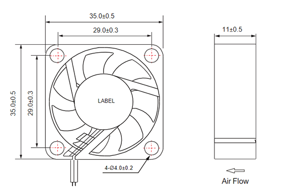UL1571 AWG #28 or equivalent 红色线正级 Red Wire Positive (+) 黑色线负级 Black Wire Negative (-)