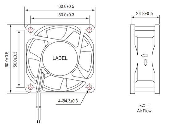 UL2468 AWG #26 or equivalent 红色线正级 Red Wire Positive (+) 黑色线负级 Black Wire Negative (-)
