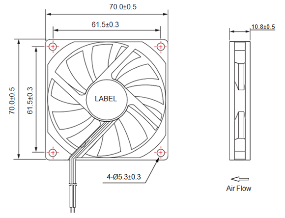 UL2468 AWG #28 or equivalent 红色线正级 Red Wire Positive (+) 黑色线负级 Black Wire Negative (-)