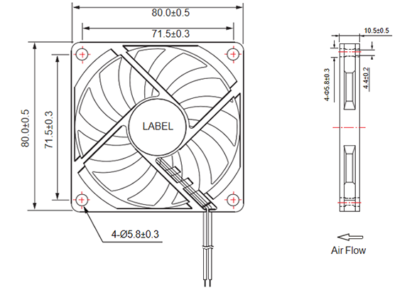 UL1571 AWG #28 or equivalent 红色线正级 Red Wire Positive (+) 黑色线负级 Black Wire Negative (-)